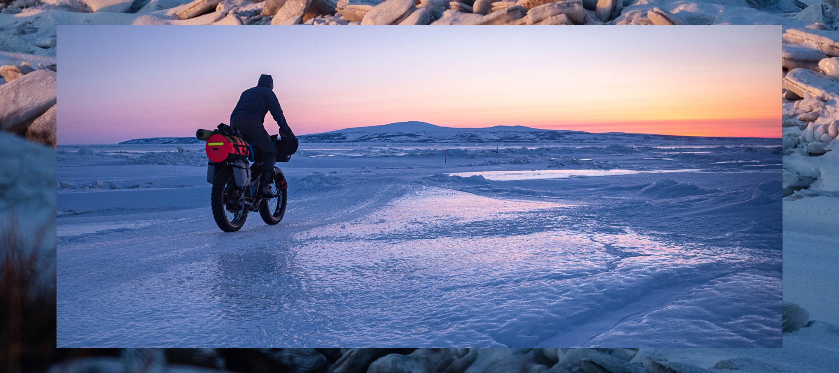 Huw Oliver is fresh (well, not quite “fresh”) from 22 days spent on Alaska’s Iditarod Trail, fat-tire biking nearly 1,000 miles from Knik to Nome across frozen rivers, sea ice, and Alaskan tundra. For every challenge presented by crossing Alaska in winter — -35-degree nights, blown-in trail, or howling wind — the trail offers respite in the form of lingering winter sunsets and northern lights reflected in the ice beneath your tyres.
