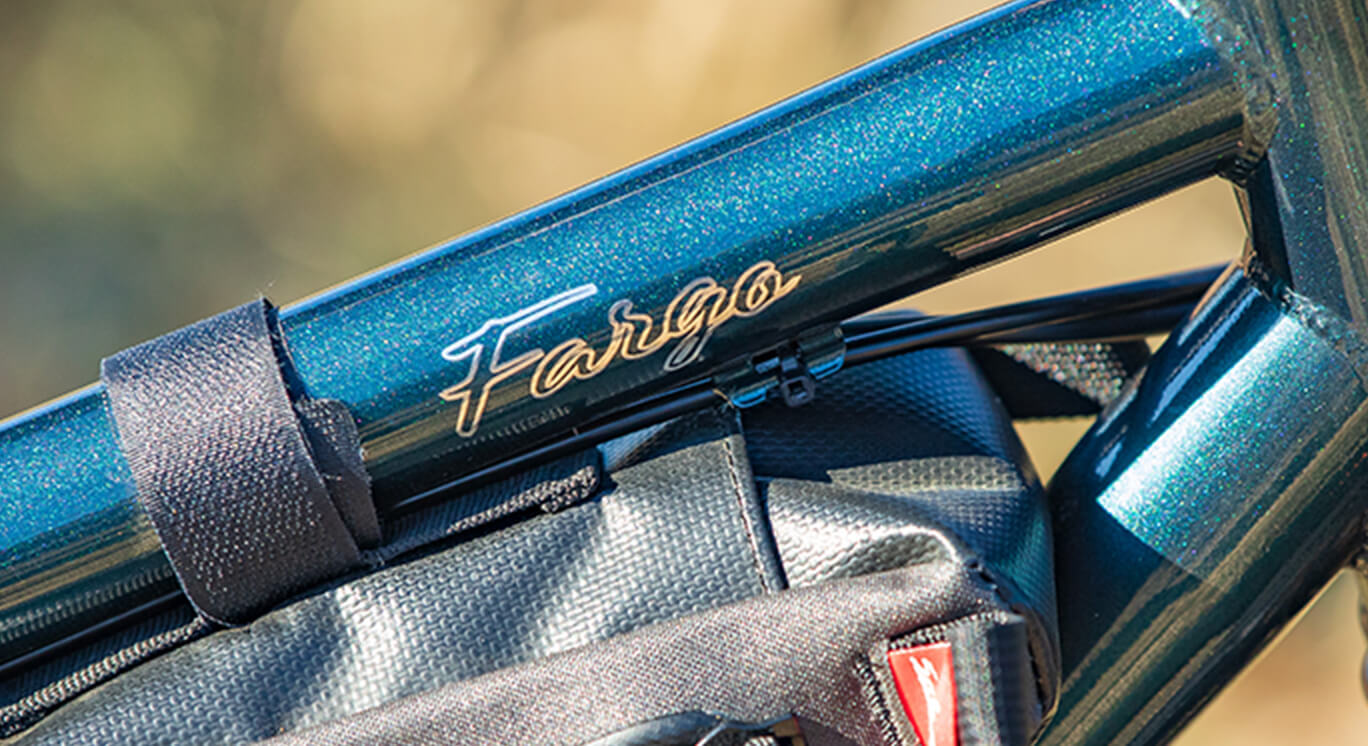 Fargo is our versatile steel or titanium bike with drop bars and mountain bike features. It’s designed for adventures ranging from rugged gravel rides to long, self-supported bikepacking trips.