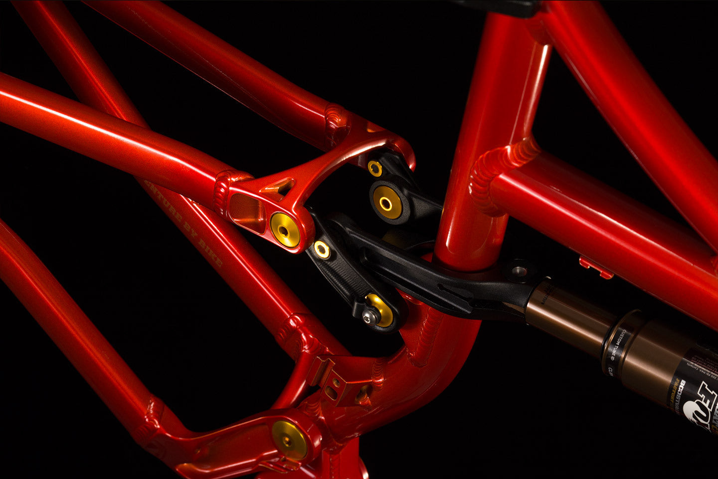 The concentric rear axle pivot in conjunction with precise wheel link, brake link, and control link placement, results in several performance gains: Exceptional bump compliance, Maximum traction, Incredible pedaling efficiency, Predictable braking, Improved frame geometry due to the elimination of unwanted suspension movement during acceleration and braking