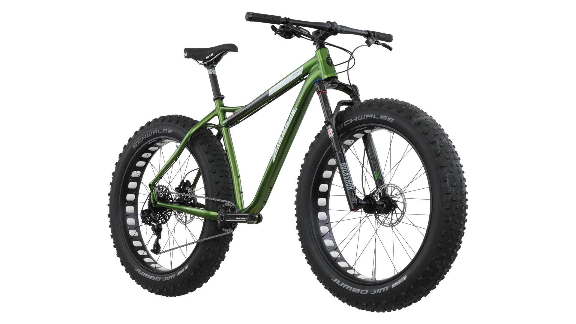 - Tires: Schwalbe Jumbo Jim, tubeless
