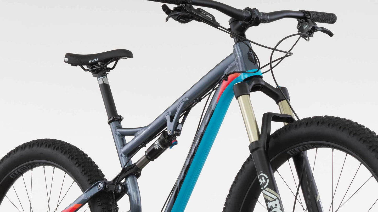 120mm of Split Pivot® rear wheel travel that is tuned with a progressive leverage ratio but slightly linear tail end; the end result is a very efficient pedaling frame that has very supple smallbump feel off the top, a lot of mid-stroke support for corner and pumping terrain, and a subtle ramp (but not too much) in end-stroke that ensures a bottomless feel, while still maximizing the use of all 120mm of rear wheel travel. The frame is designed and balanced for a 120mm travel, 51mm offset front fork, but has been updated for 2016 to allow the use of 130mm travel, 51mm offset forks for aggressive 29er riders looking to add BB height and slacken the headtube angle, and also to compensate for the slightly smaller diameter of 27.5+ wheel and tire combos