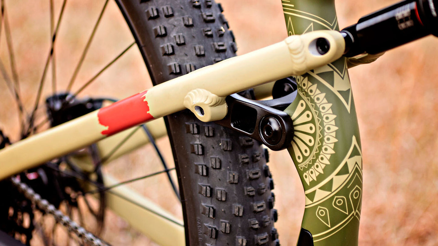 The concentric rear axle pivot in conjunction with precise wheel link, brake link, and control link placement, results in several performance gains: Exceptional bump compliance / Maximum traction / Incredible pedaling efficiency / Predictable braking / Improved frame geometry due to the elimination of unwanted suspension movement during acceleration and braking