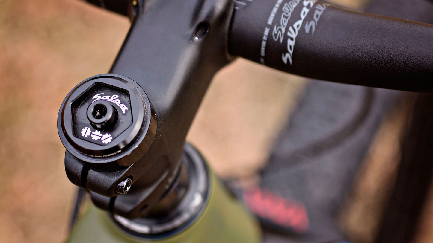 Extra sold separately, Salsa Split Pivot® Top Cap Dropout Tool included with frame for field changes without the need to carry a 22mm cone wrench
