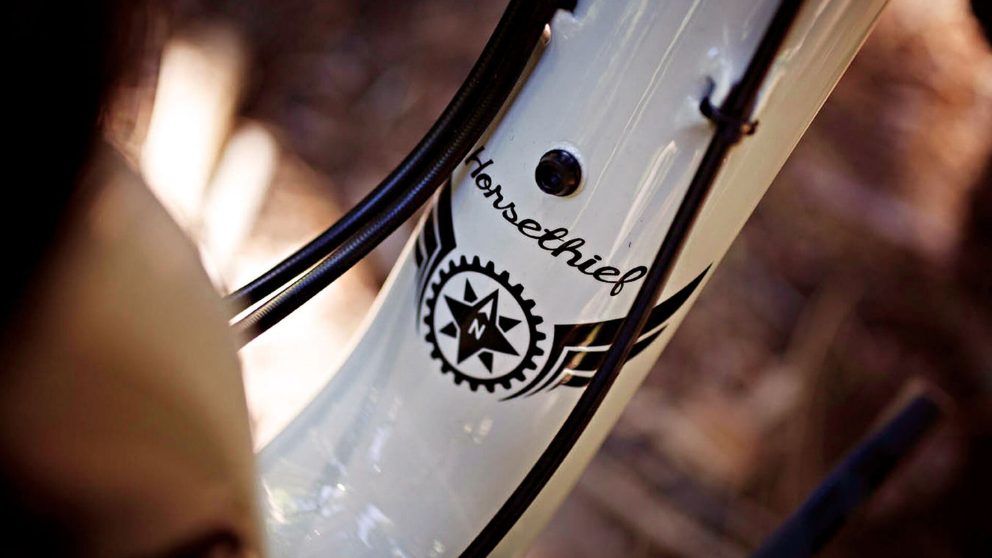 The Horsethief/Pony Rustler frame retains is capacity for run 29 x 2.25–2.4" wheel and tires setups, but sees an upgrade to Boost rear spacing and Boost drivetrain component compatibility. This allows the use of 27.5+ setups (27.5 x 3.0") and gives rise to the Pony Rustler name, a Horsethief frame spec’d stock with 27.5+ wheels. Both Horsethief and Pony Rustler models are spec’d and compatible with 110mm spaced 29/27.5+ (51mm offset) forks up to 130mm in travel, which allows the rider to toggle between 29/27.5+ wheelsets with simply a wheel change