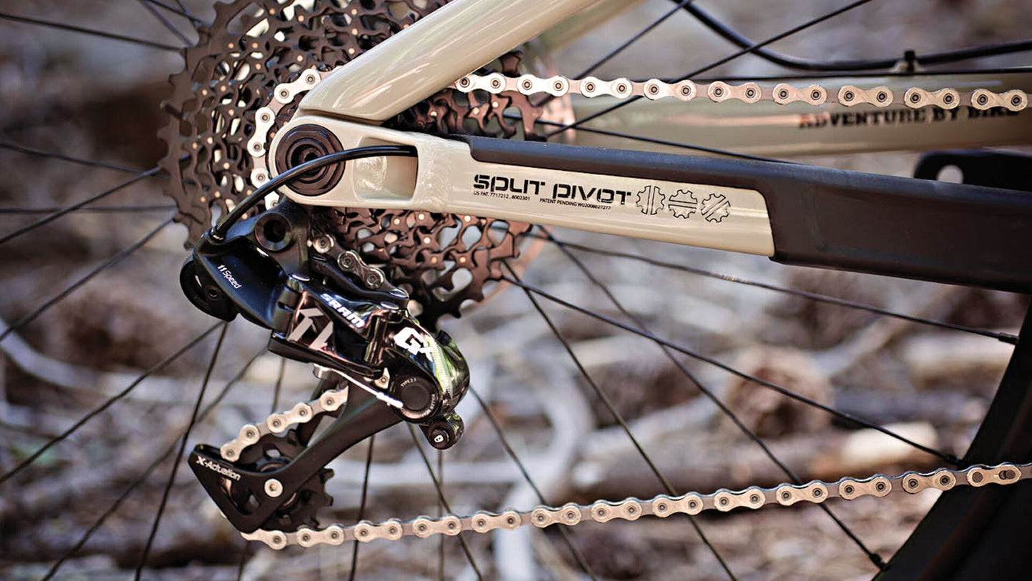 The concentric rear axle pivot in conjunction with precise wheel link, brake link, and control link placement, results in several performance gains: Exceptional bump compliance / Maximum traction / Incredible pedaling efficiency / Predictable braking / Improved frame geometry due to the elimination of unwanted suspension movement during acceleration and braking