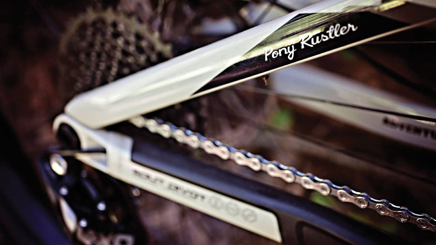 The Horsethief/Pony Rustler frame has the capacity to run 29 x 2.25–2.4" wheel and tires setups, but sees an upgrade to Boost-148 rear spacing and Boost-148 drivetrain component compatibility. This allows the use of 27.5+ setups (27.5 x 3.0") and gives rise to the Pony Rustler name, a Horsethief frame spec’d stock with 27.5+ wheels. Both Horsethief and Pony Rustler models are spec’d and compatible with 110mm-spaced 29/27.5+ (51mm offset) forks up to 130mm in travel, which allows the rider to toggle between 29/27.5+ wheelsets with simply a wheel change