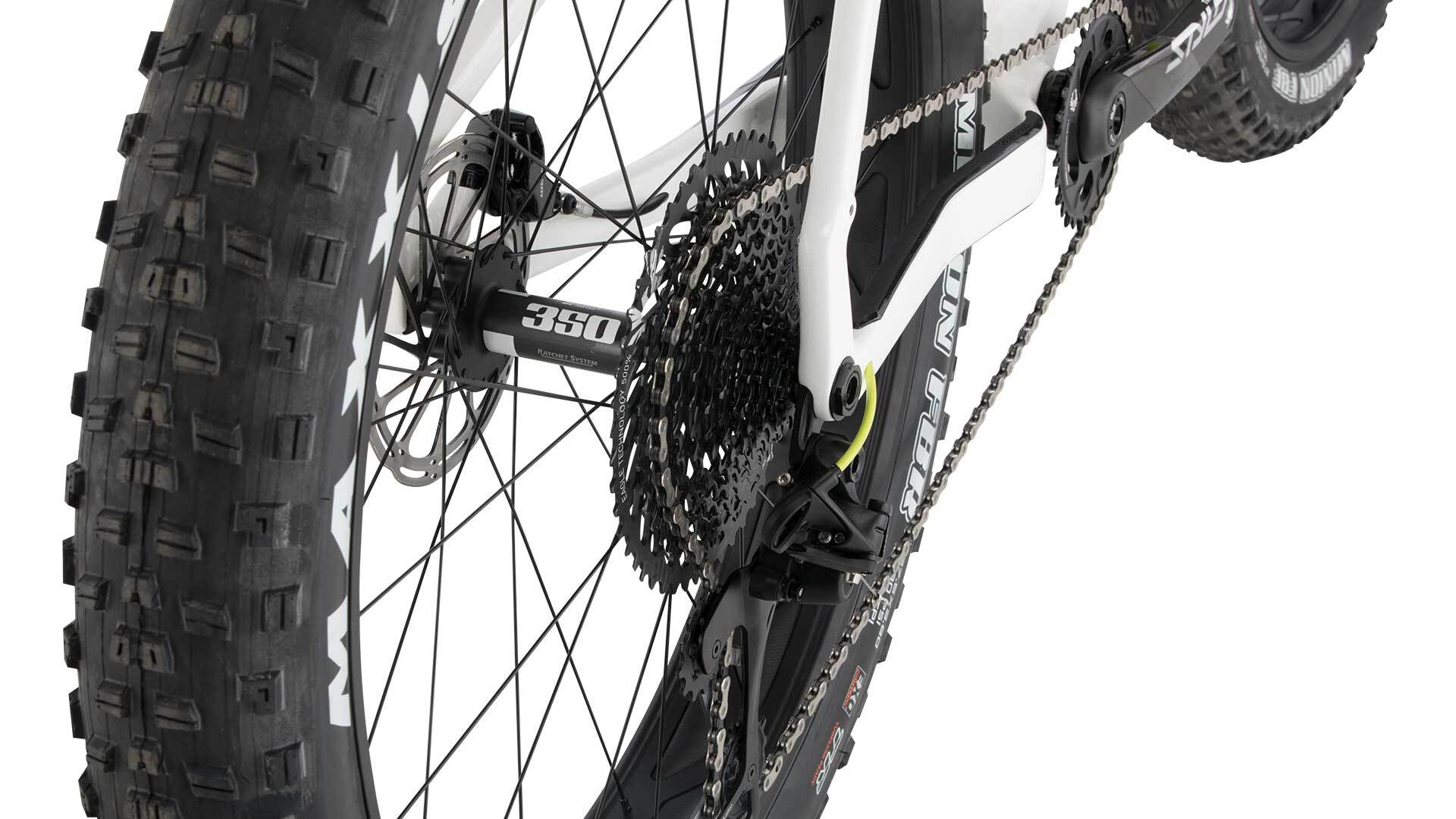 The Beargrease Carbon frame is designed for the best of all drivetrain performance while maintaining narrow fat bike crank arms for less knee stress: 197mm symmetrical rear end for modern rim/tire fit / 100mm threaded bottom bracket / Rider-friendly narrow Q-Factor cranks / 1x optimized frame design / Up to a 32t max chainring