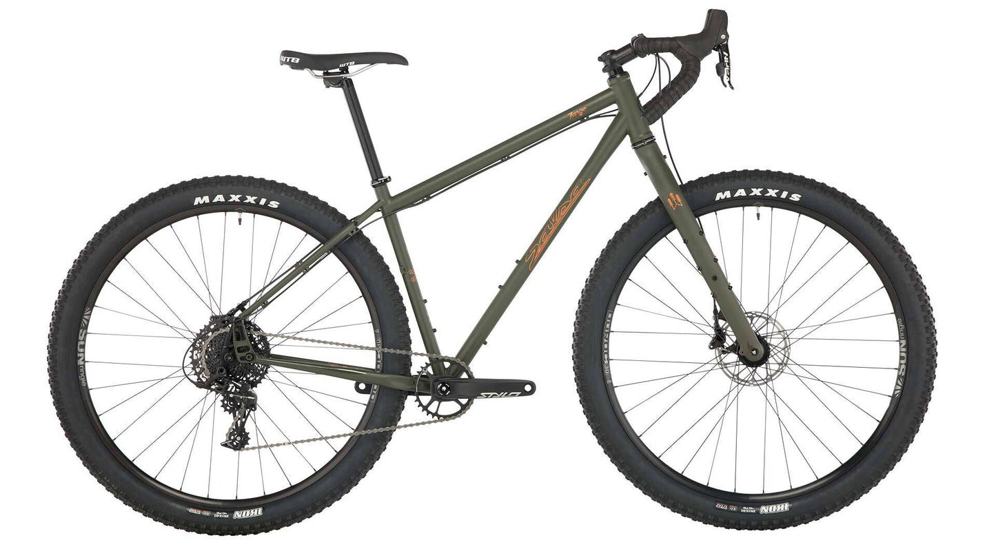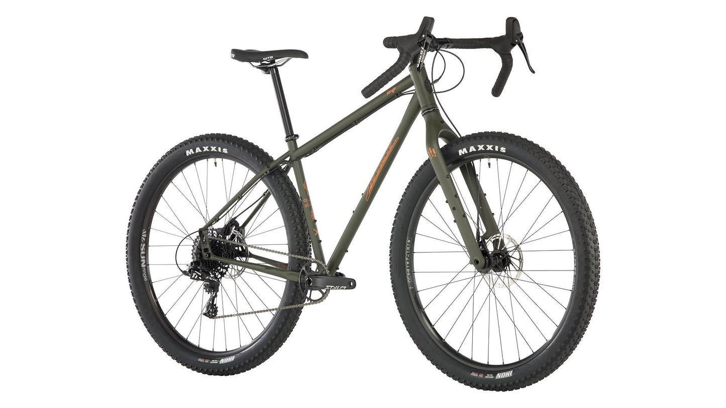The Fargo Apex features our steel frame and carbon Firestarter 110 Deluxe fork, paired a SRAM Apex drivetrain for smooth shifting. 29 x 2.6” wheels/tires provide excellent rollover, massive traction, and great momentum.