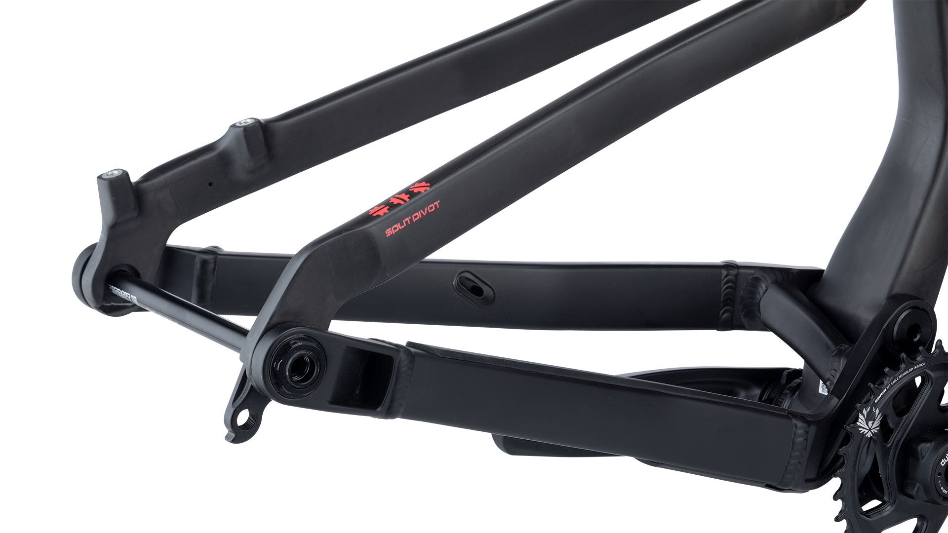 Split Pivot® provides a host of impressive suspension characteristics because the system isolates pedaling forces and braking forces from each other, allowing us to tune and optimize the bike for both independently. The concentric rear axle pivot, in conjunction with precise wheel link, brake link, and control link placement, results in: Excellent bump compliance / Incredible pedaling efficiency / Smooth and predictable braking throughout travel / Maximum traction