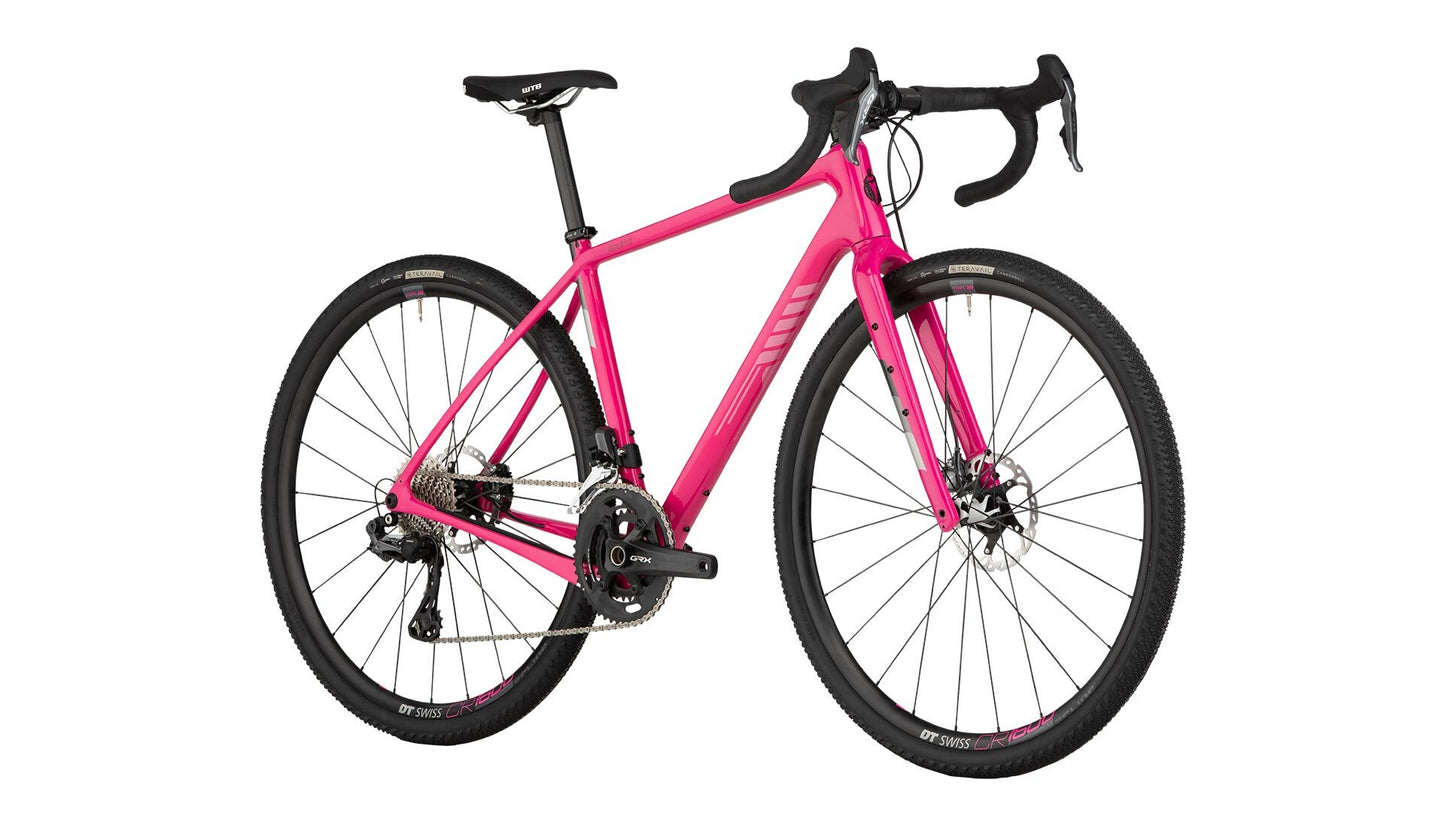 Warbird features the latest evolution of our already industry leading gravel racing geometry. Warbird places the rider in a position that can be maintained for hours on end over bumpy B-roads and loose surfaces, drastically reducing fatigue. A low bottom bracket and stable wheelbase help keep the tires planted and boost confidence. Long top tubes paired with short stems provide increased stability at high speed and on rough descents