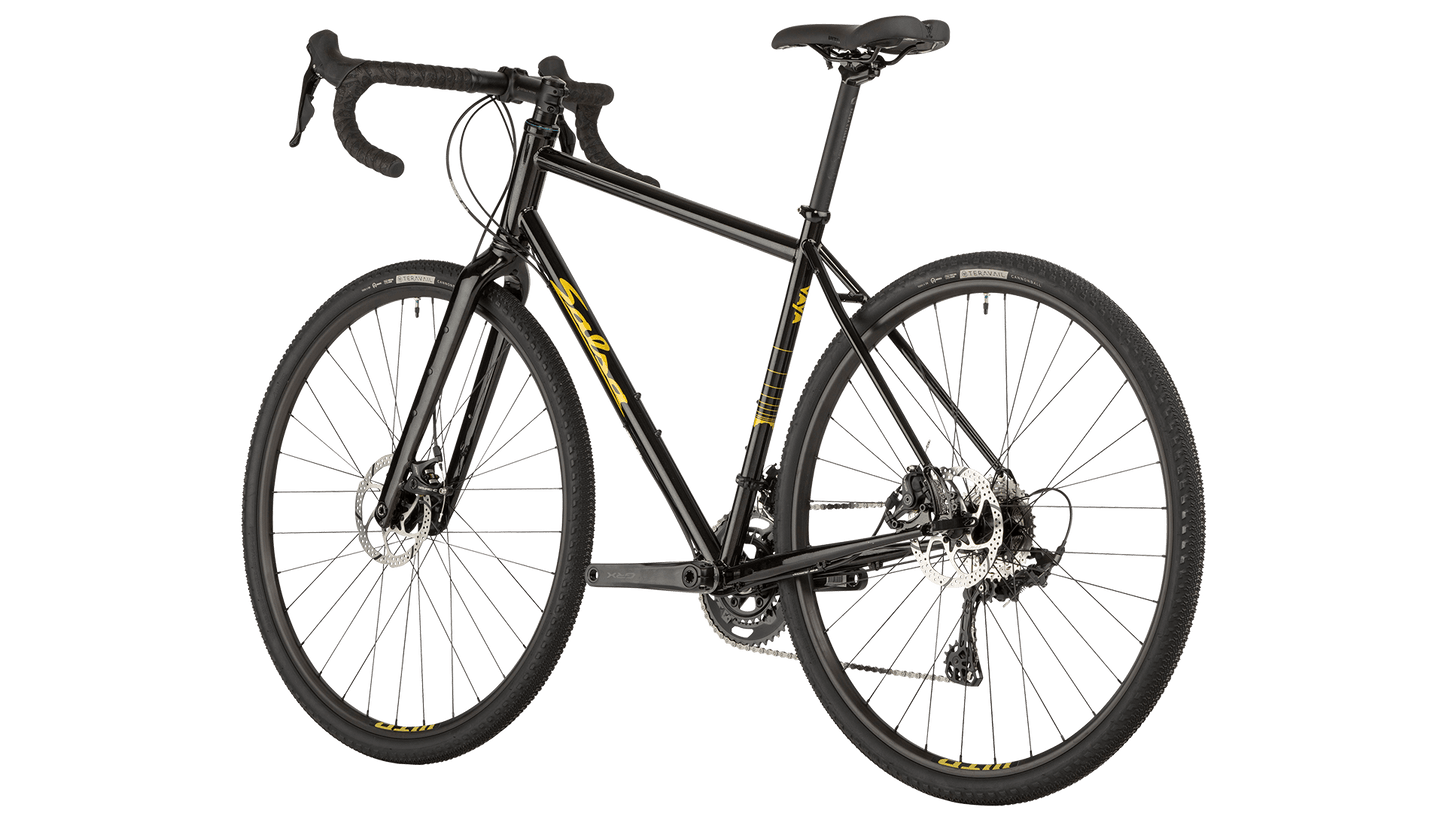 Designed as an any-road or light touring bike, optimized for fit with Salsa drop bars. Stable handling with a light load, and ready to explore on any road surface