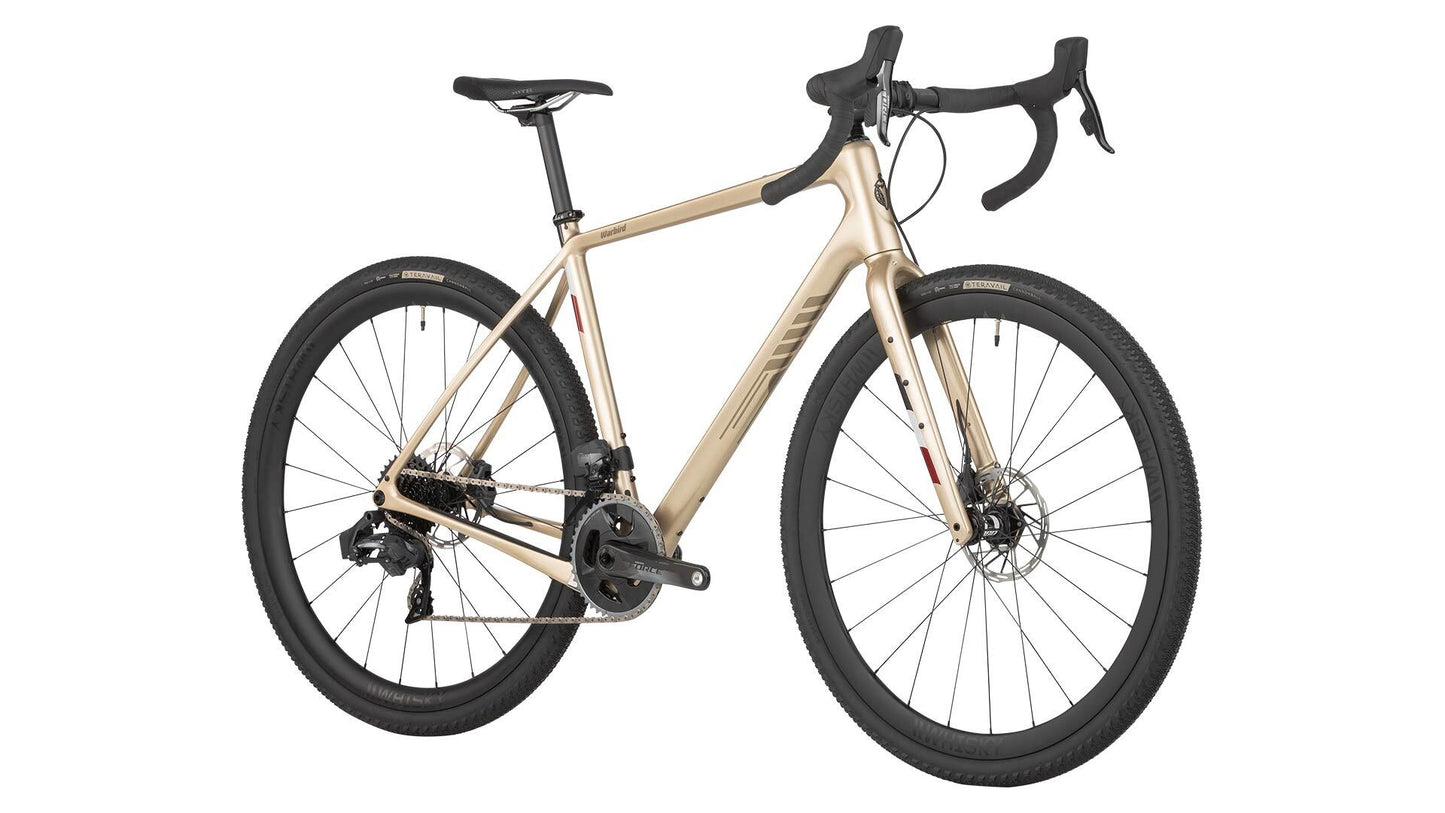 Warbird features the latest evolution of our already industry leading gravel racing geometry. Warbird places the rider in a position that can be maintained for hours on end over bumpy B-roads and loose surfaces, drastically reducing fatigue. A low bottom bracket and stable wheelbase help keep the tires planted and boost confidence. Long top tubes paired with short stems provide increased stability at high speed and on rough descents