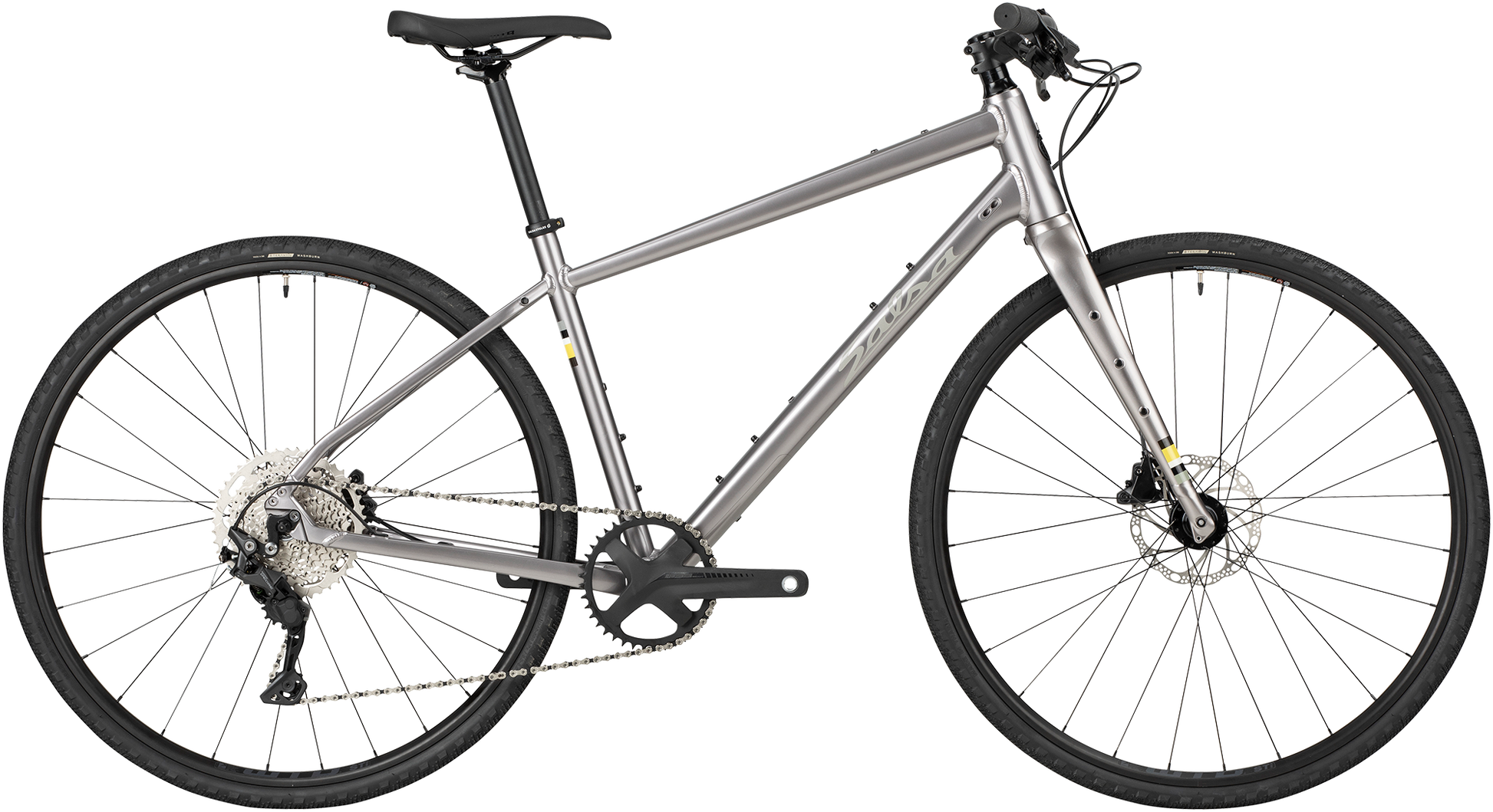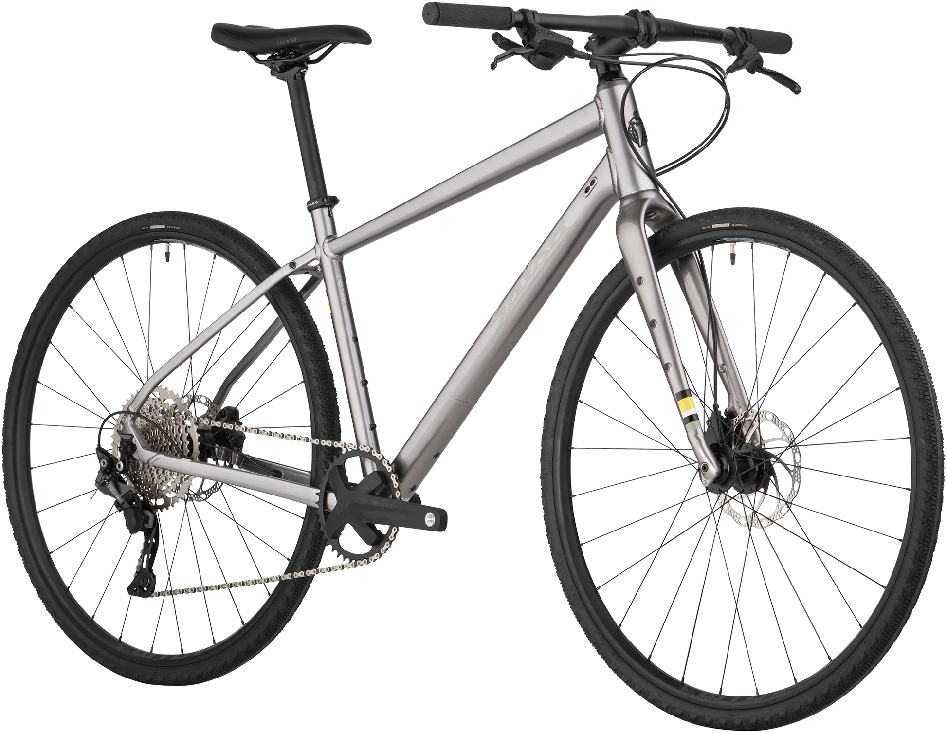 700c wheels and 38 mm tires roll efficiently on a wide range of surfaces and offer traction in loose corners. Shimano’s time-tested Deore components ensure a smooth, reliable ride. Journeyer is a flat bar gravel bike that can go a long way.