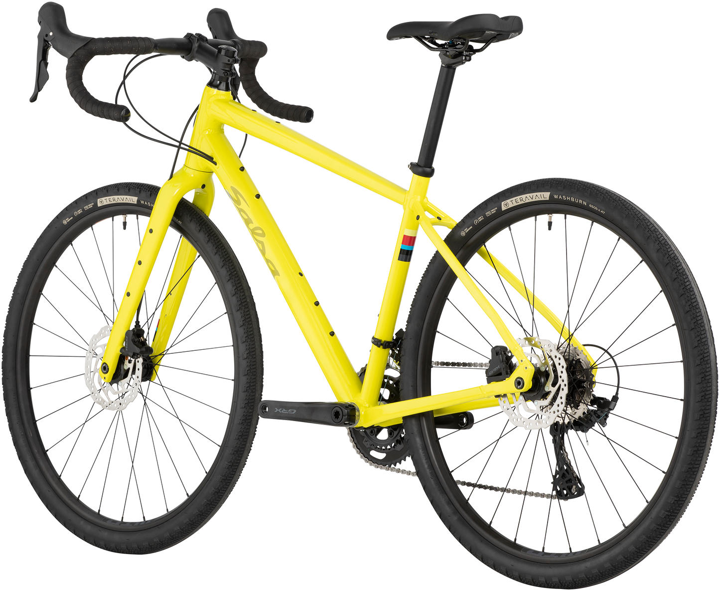 650b wheels accelerate quickly, and the high-volume 47 mm Teravail Washburn tires blend straight-line speed with confidence in turns on loose terrain.