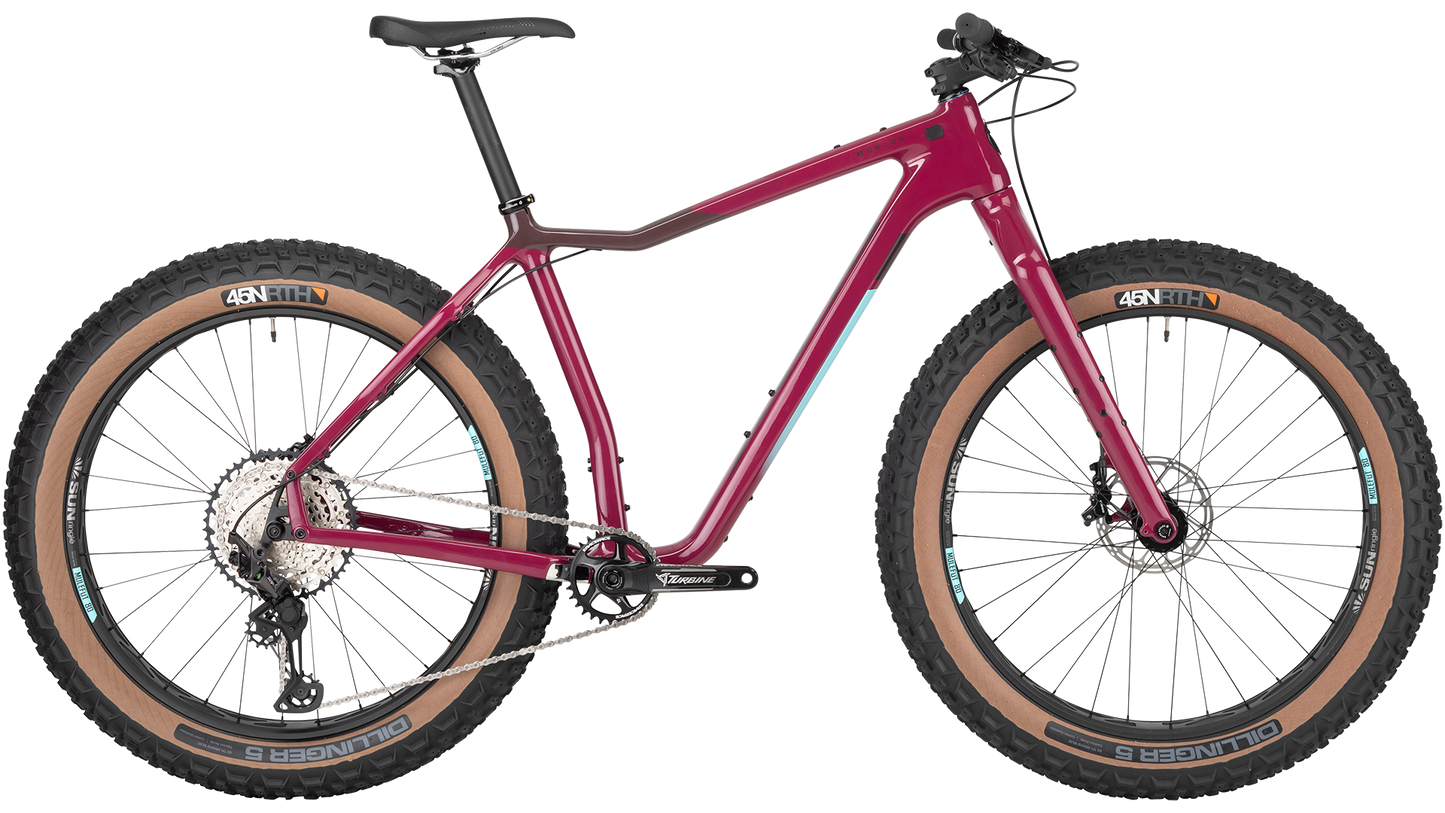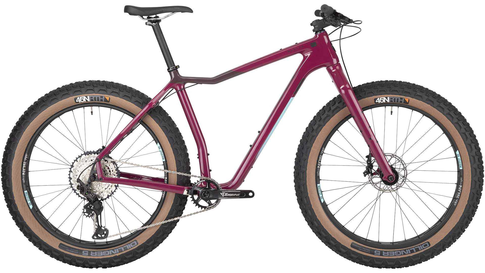 The Mukluk frame is 1x and 2x-compatible and designed for premium drivetrain performance while maintaining narrow fat bike crank arms for less knee stress: 197 mm symmetrical rear end for modern rim and tire fit / 100 mm threaded bottom bracket / Rider-friendly narrow Q-factor cranks / Designed for 1x or 2x drivetrains / Up to a 32t max chainring for 1x setups; 36/24t max for 2x setups