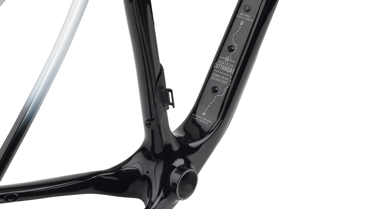 The Cutthroat C Frameset is all about potential. Build it into your dream bikepacking bike and tackle the Tour Divide or the open-ended adventure of your choosing. Cutthroat’s lightweight carbon frame with Class 5 VRS™ supports you every mile of the way with stiffness for pedaling efficiency and compliance for comfort. The drop-bar mountain bike geometry feels stable whether your route includes ribbons of pavement or rugged doubletrack, and it only gets more stable when you load up the ample cargo mounts. This bikepacking frameset is ready for your next big adventure — just add your favorite components.