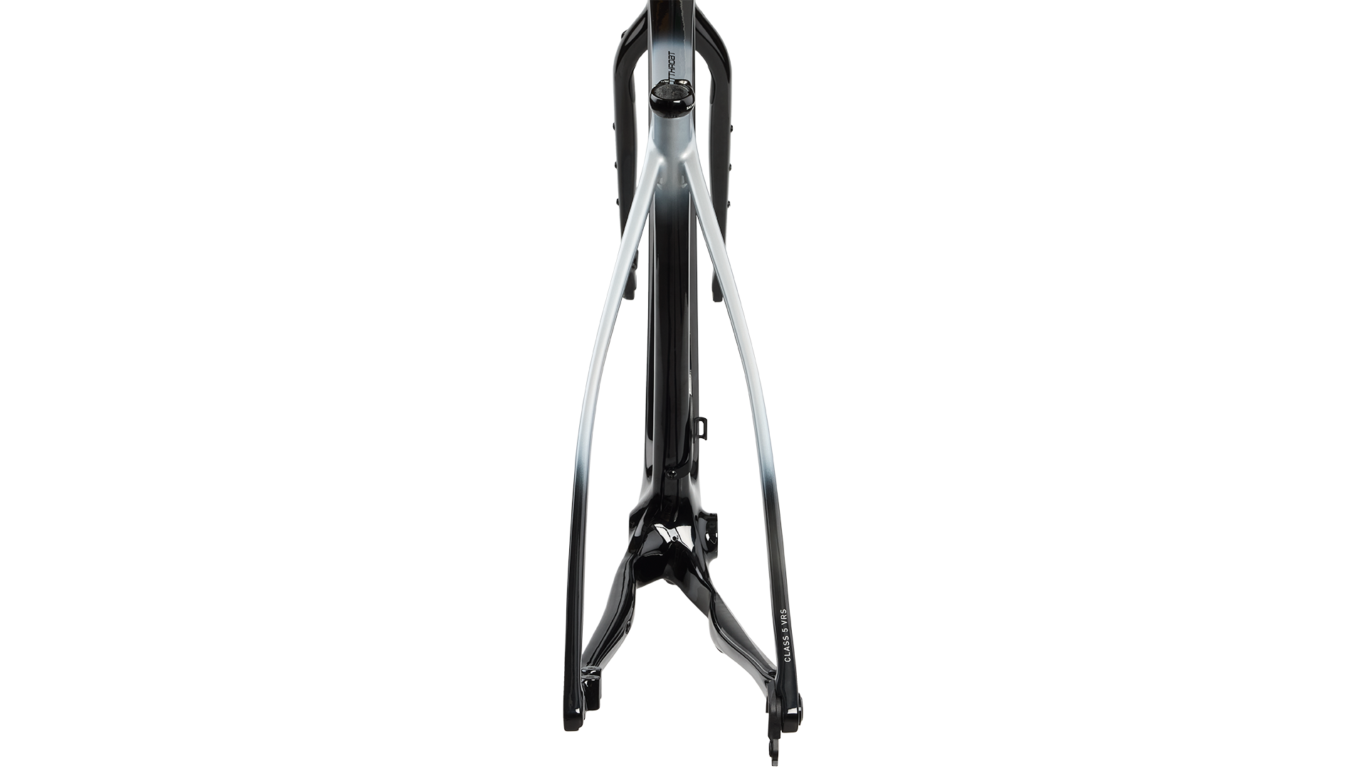 The Class 5™ Vibration Reduction System revolves around seatstays with a tall, thin, vertically-oriented profile that promotes vertical compliance by allowing the seatstays to "flex" outwards on impacts. Horizontally-oriented chainstays work to resist torque and maintain a laterally stiff rear end. The lack of seatstay and chainstay bridges allows the full length of the stays to contribute to flexibility. A rear thru-axle delivers precise tracking while allowing the seatstays to provide incredible compliance