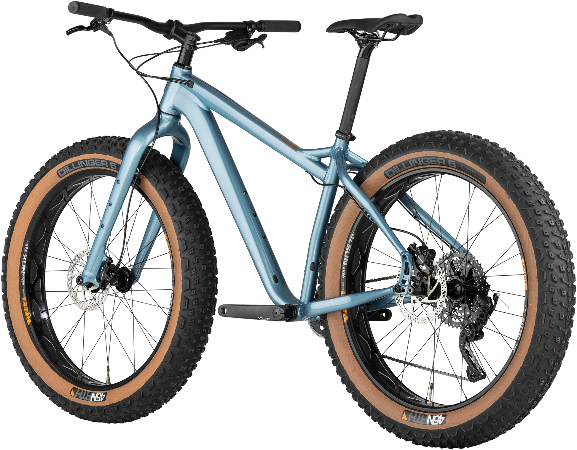 Heyday! geometry works extremely well in all conditions and use cases, whether it's riding groomed singletrack at your local trail, exploring a coastline, or embarking across the wild frozen expanses of Alaska. We use the shortest chainstays possible with a headtube angle and fork offset that place the rider’s center of gravity farther back. This combination of front and rear center is key to getting a fat bike that is stable, steers well in loose conditions, and still feels nimble despite the massive wheels and tires. A low bottom bracket also keeps the rider’s center of gravity low and makes dabbing, dismounting, and remounting easier