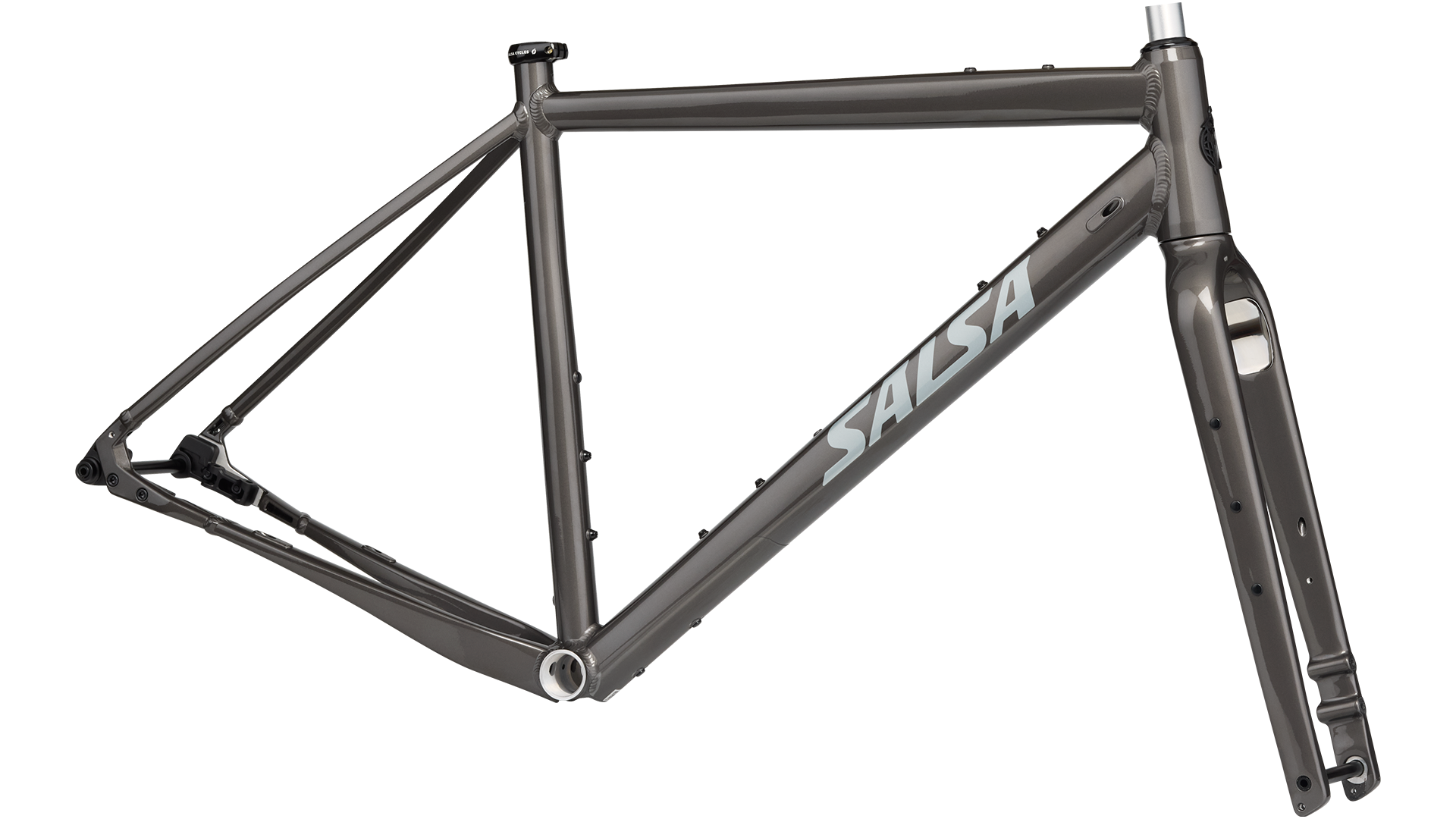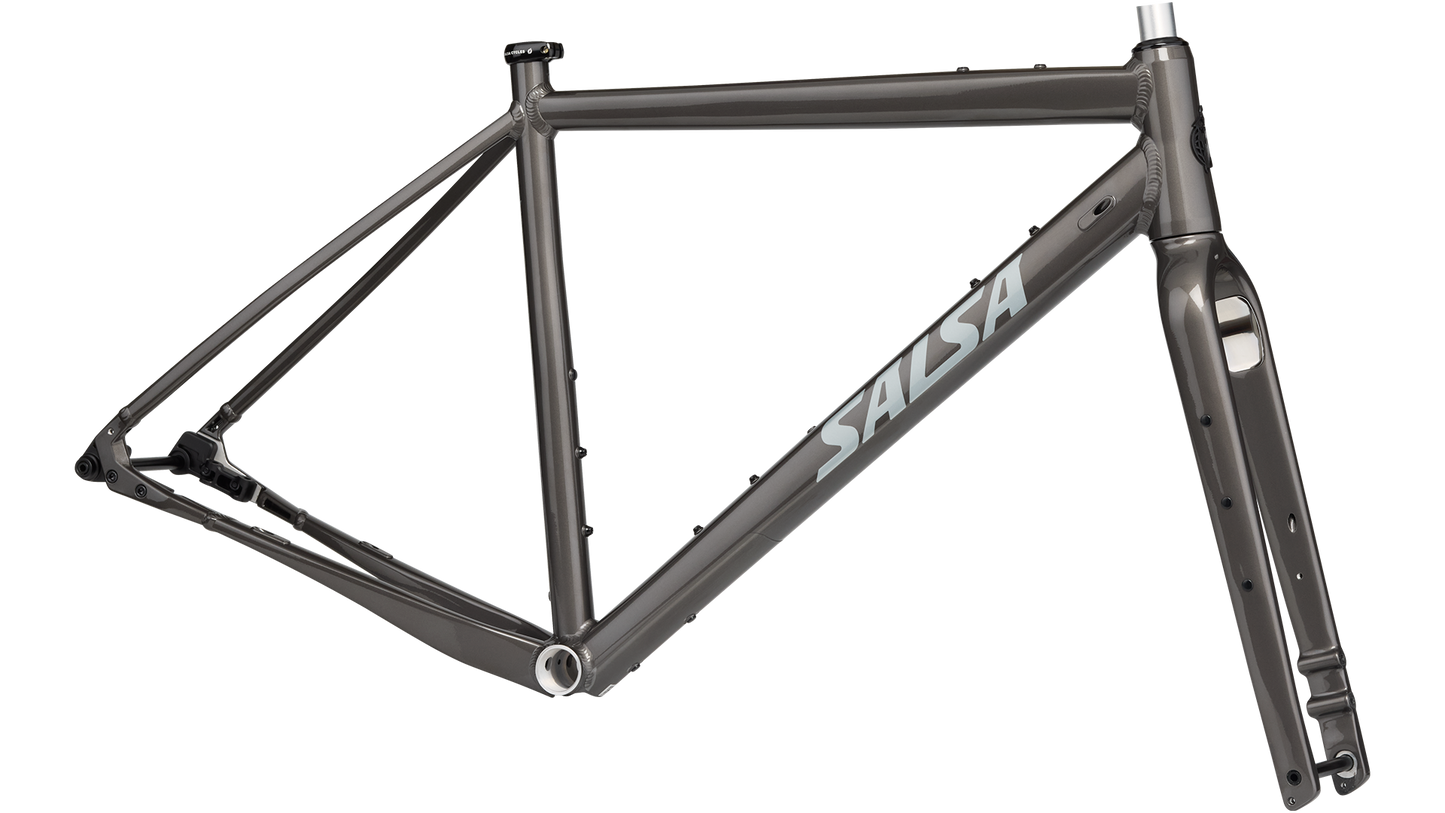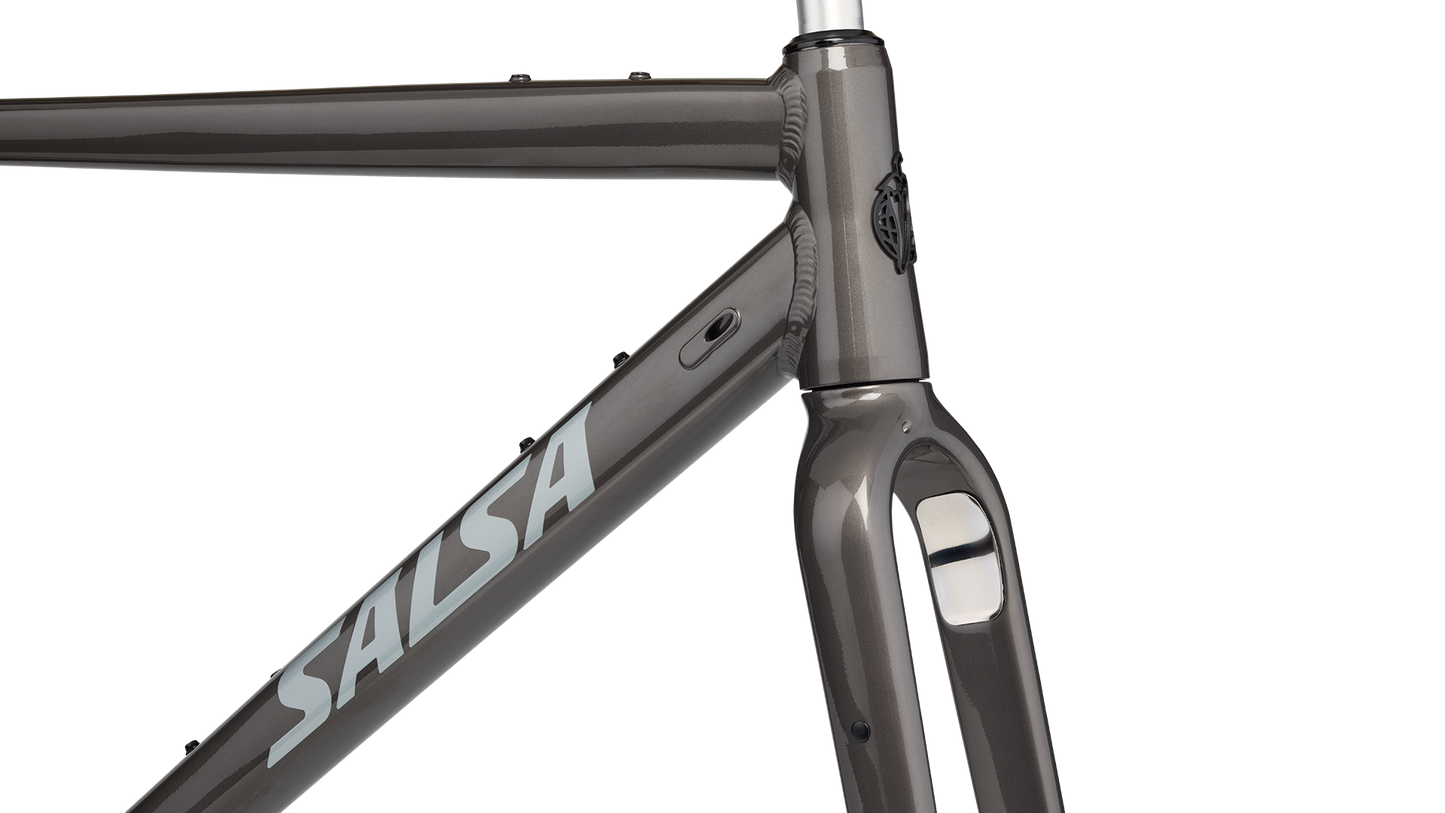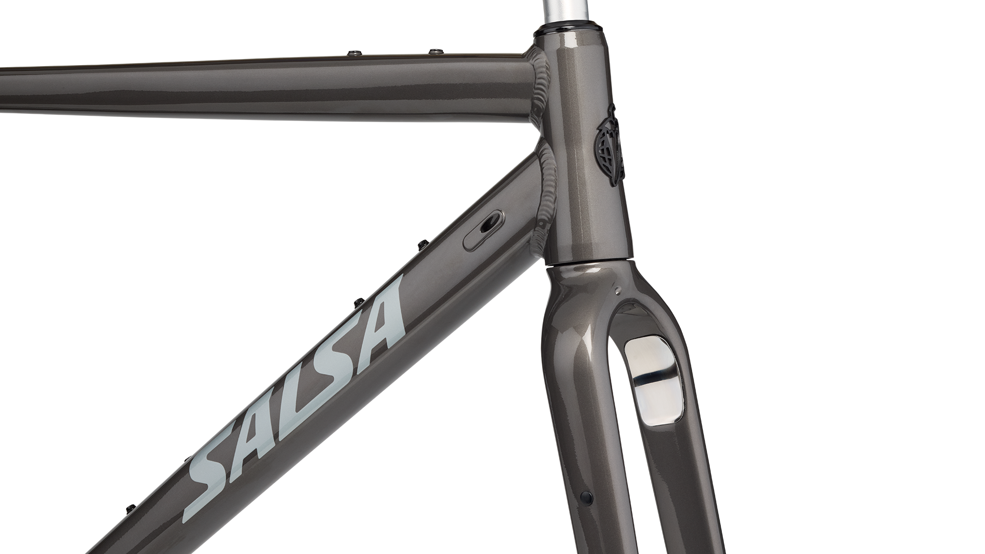 Mid-blade mounts of the fork allow for front racks such as the Salsa Down Under, designed for carrying touring panniers; also compatible with the Salsa Wanderlust rear rack when used with a Salsa Rack-Lock seatpost collar