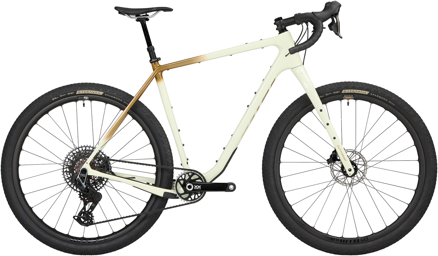 Inspired by and built for the Tour Divide: Cutthroat C Force X0 AXS Transmission is one of the best bikepacking bikes available, capable of covering many miles of mixed surfaces with confidence. Cutthroat’s skeleton is a lightweight carbon frame featuring our Class 5™ VRS (Vibration Reduction System) for comfortable compliance, plus drop-bar mountain bike geometry for control on dicey terrain. With rack mounts and provisions for bikepacking bags, you can distribute your gear however you want. SRAM’s X01 Eagle AXS drivetrain is paired with Force shifters to reduce hand fatigue on those long-distance days, and offers all the gear range you need for speedy flats and monumental climbs.