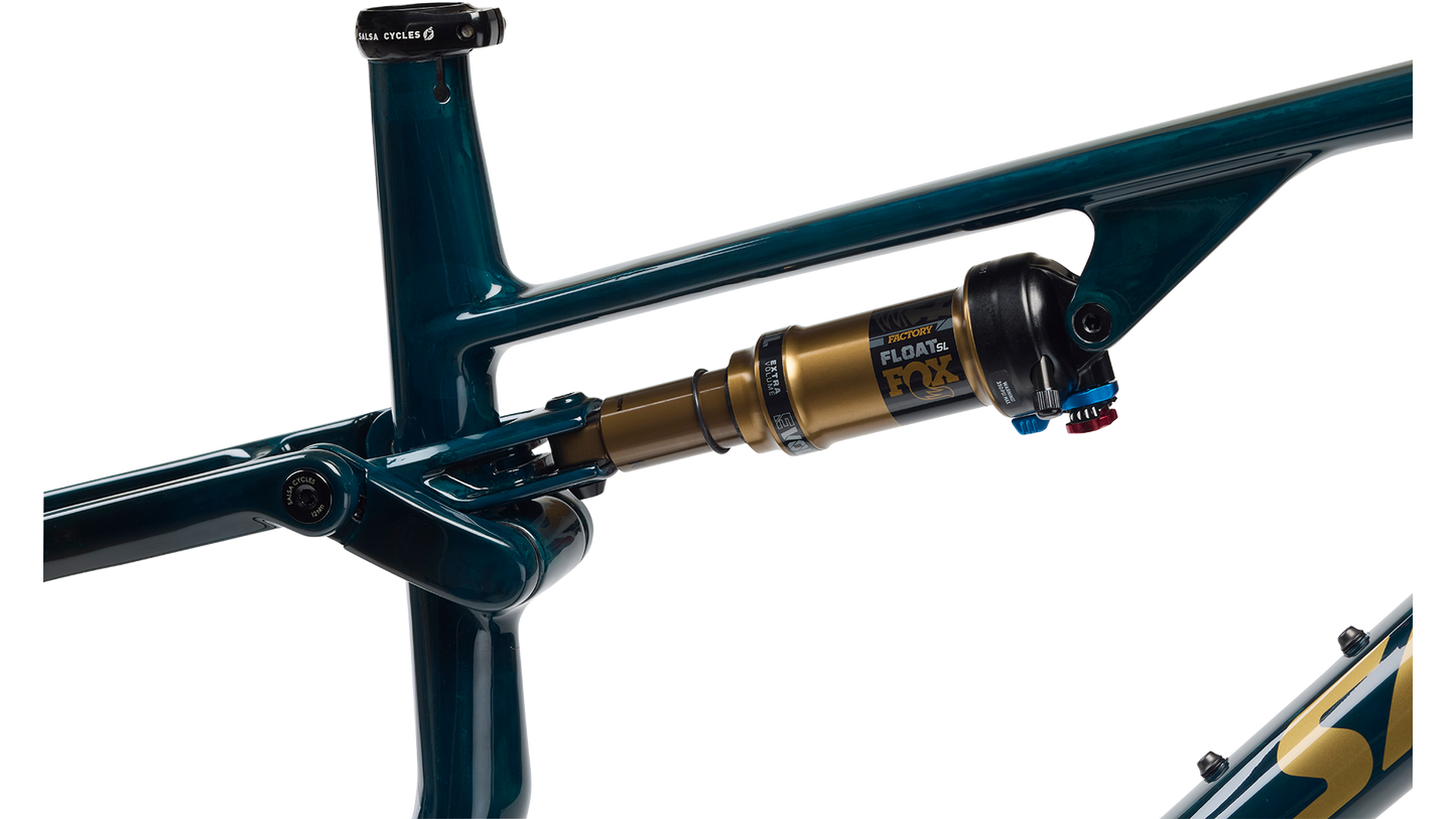 Spearfish is capable of running rear travel between 100-120mm and fork travels between 100-130mm of travel. Spearfish uses metric rear shocks in the 190mm eye-to-eye length with strokes between 37.5mm and 45mm to adjust the rear travel in roughly 6.5mm increments with each 2.5mm change in stroke length starting at 100mm rear wheel travel for a 37.5mm stroke shock. We recommend pairing fork travel to match rear travel or over forked by 10mm.