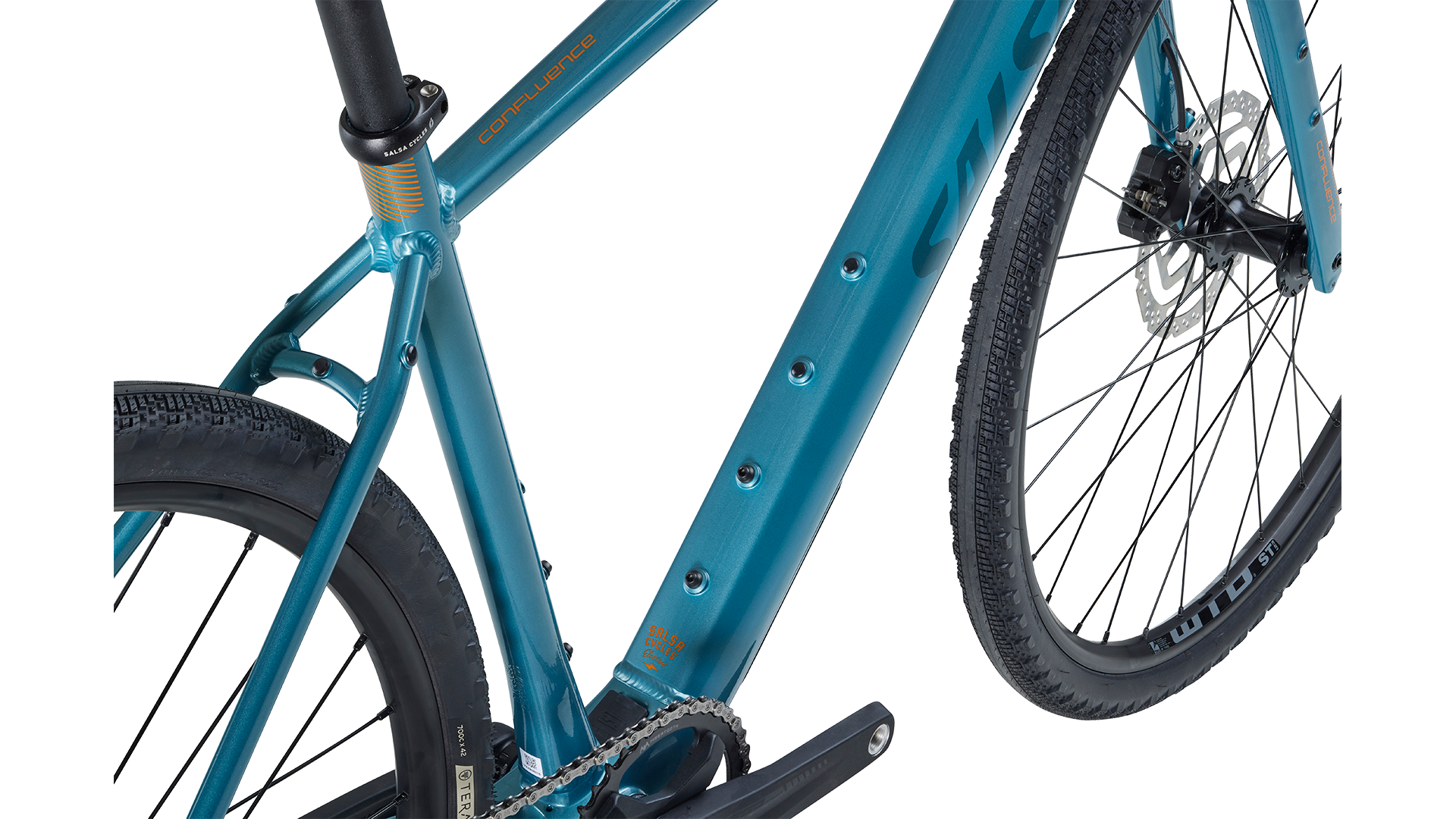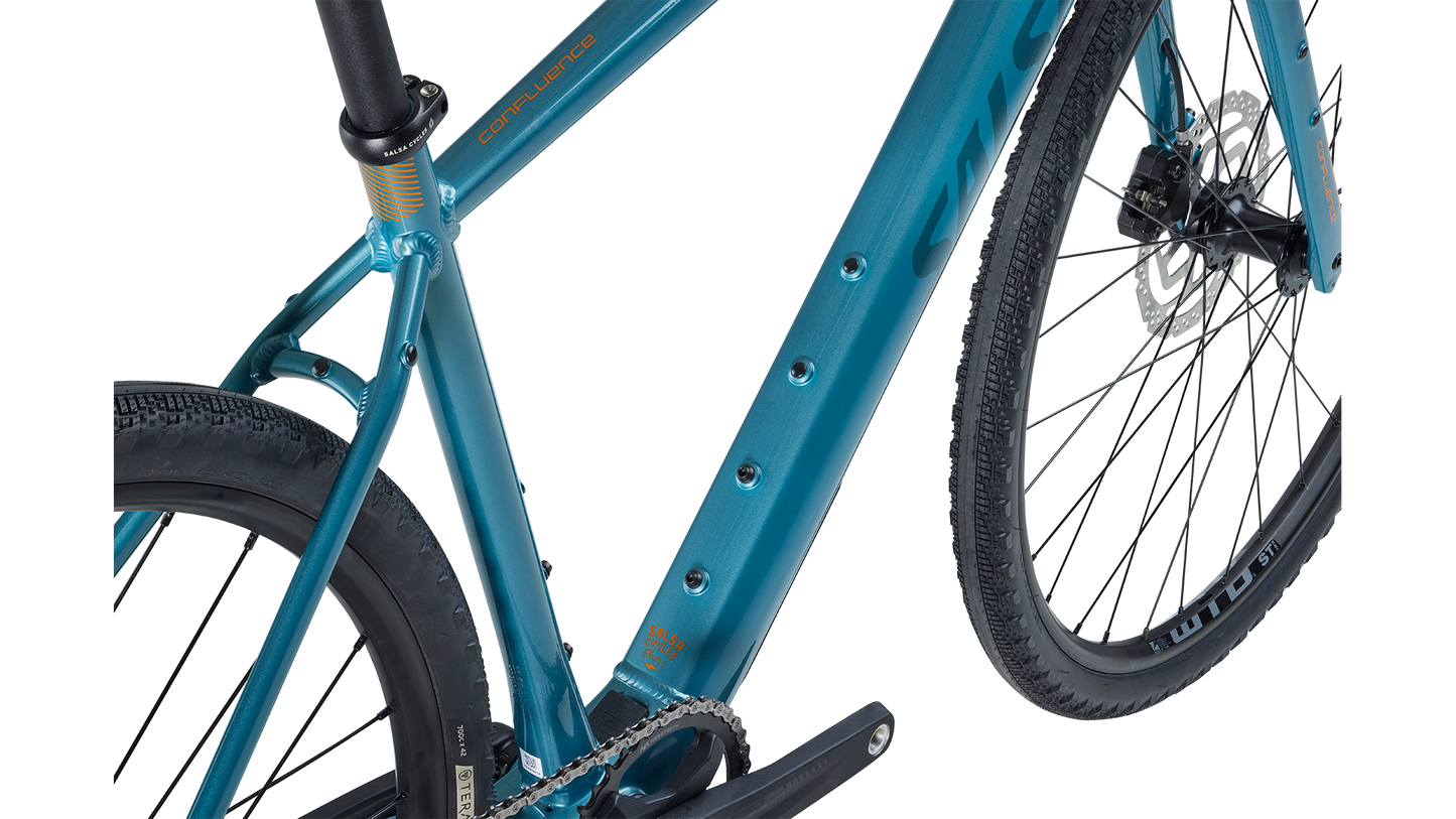 Confluence fits up to 700c x 50mm tires, so you can ride those lesser-traveled tracks. 700c x 42mm maximum tire clearance when equipped with fenders.