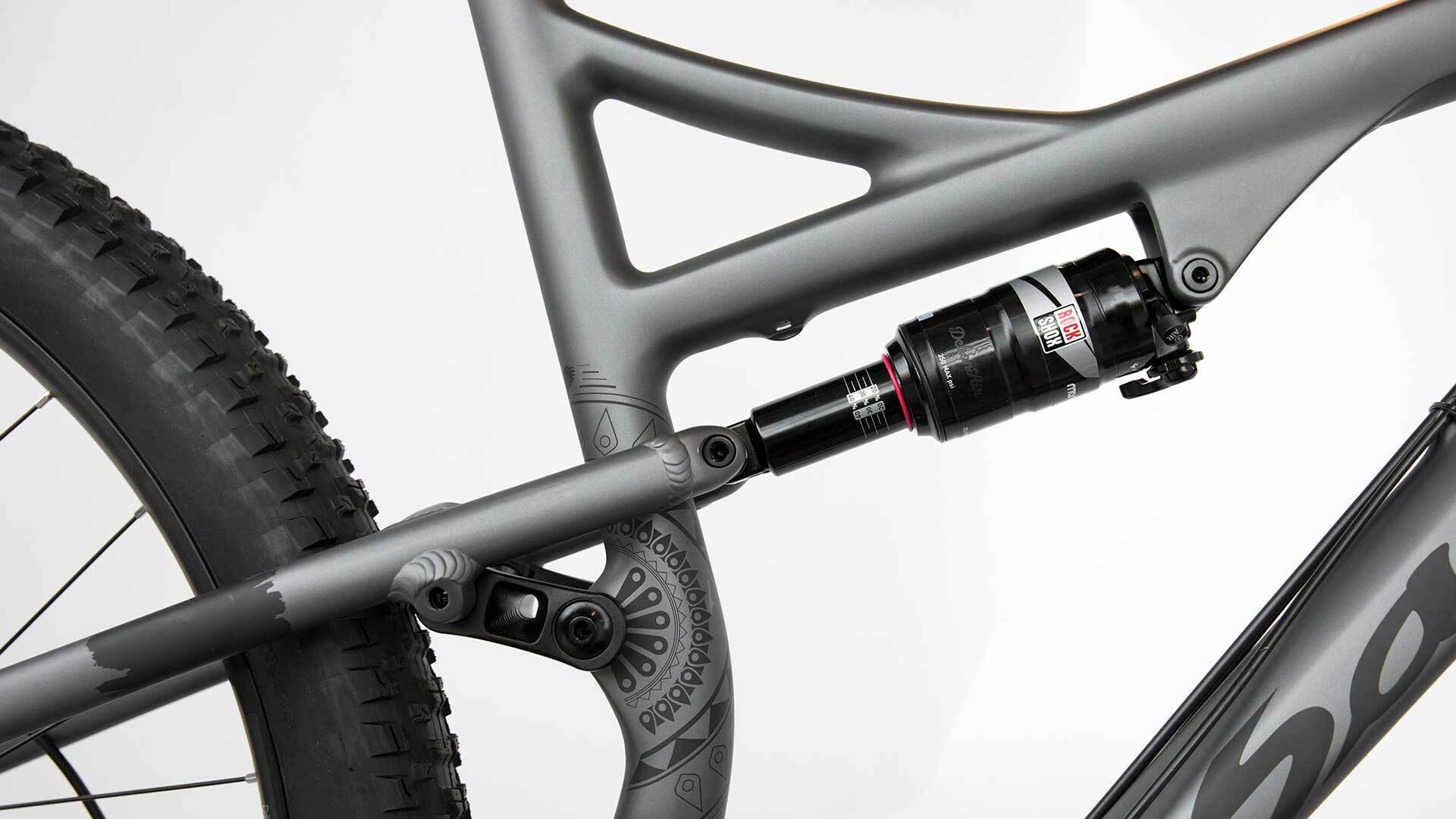 The concentric rear axle pivot in conjunction with precise wheel link, brake link, and control link placement, results in several performance gains: Exceptional bump compliance / Maximum traction / Incredible pedaling efficiency / Predictable braking / Improved frame geometry due to the elimination of unwanted suspension movement during acceleration and braking