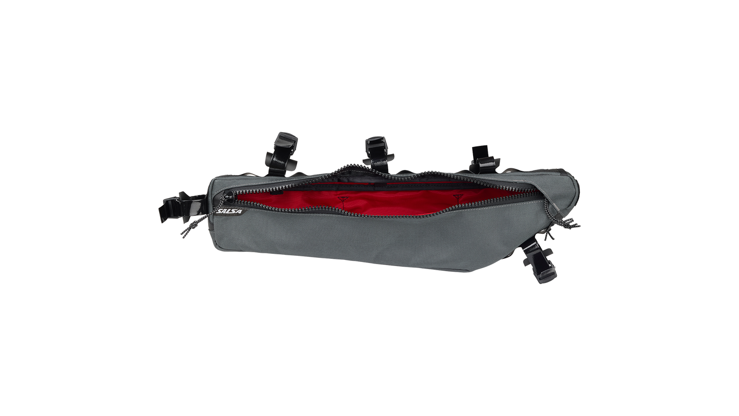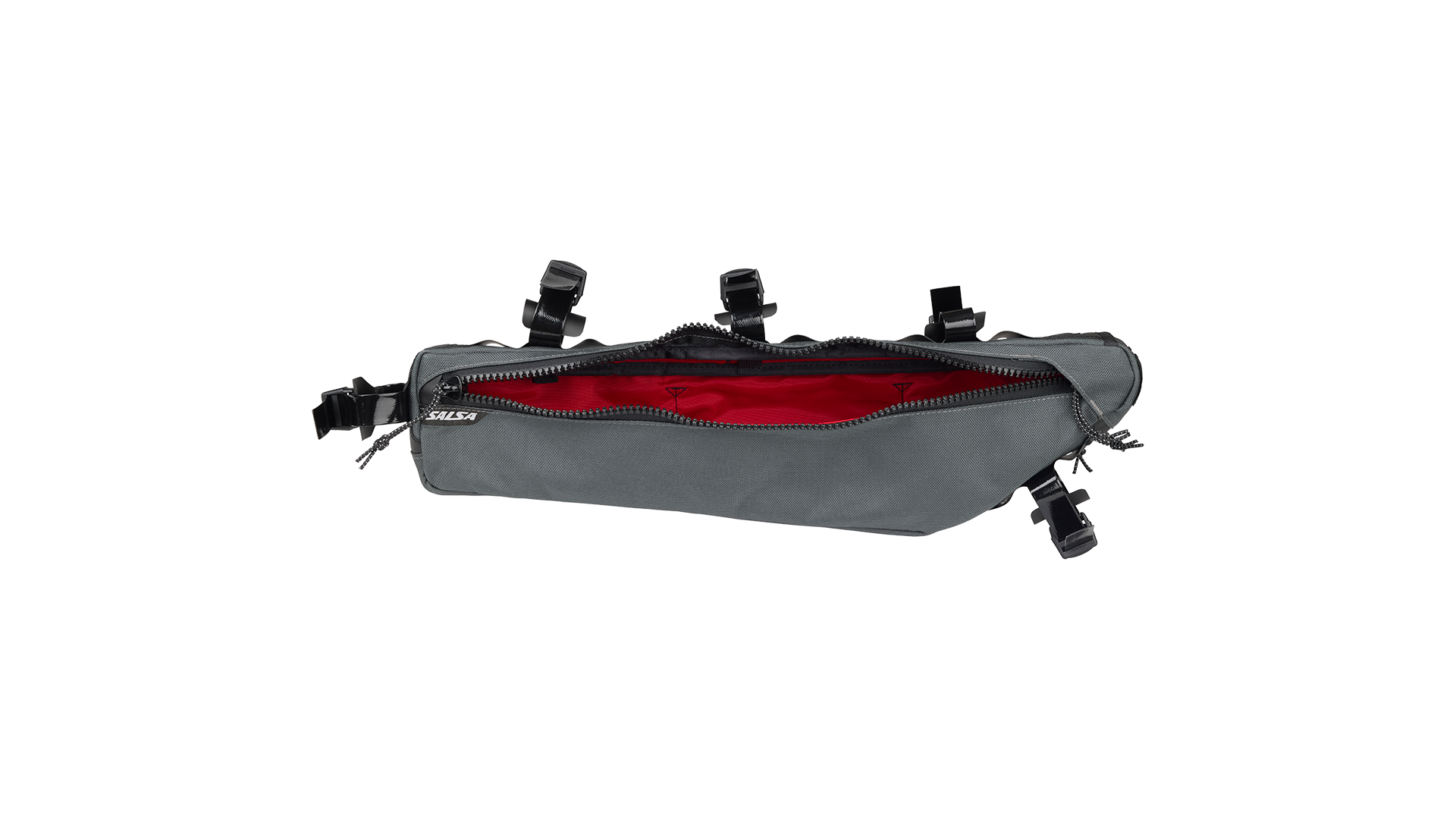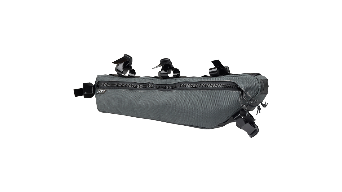 The EXP Series Cholla Half-Frame Bag keeps your ride needs easy to reach, but doesn’t block you from mounting bottles. Six sizes help maximize space (and aesthetics) on a wide range of Salsa frames — and other bikes, too. And forget about strap rub with direct-mount capability on compatible Salsa frames. The bluesign®️-approved Cordura nylon and molded-tooth zippers will stand up to dusty trails and daily use. Load up this half-frame bag and go find your next Adventure by Bike.