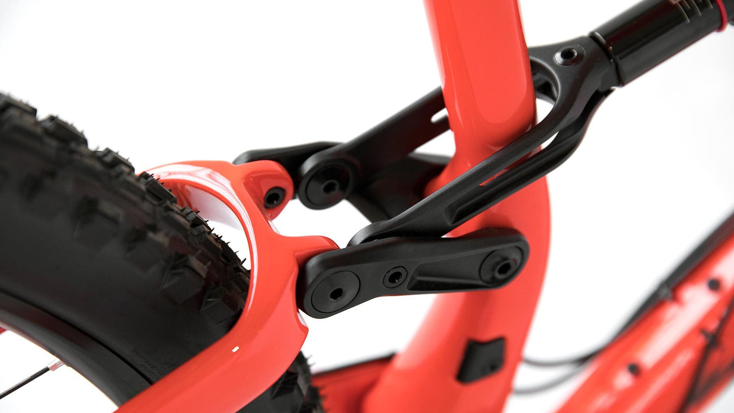 The concentric rear axle pivot in conjunction with precise wheel link, brake link, and control link placement, results in several performance gains: Exceptional bump compliance / Maximum traction / Incredible pedaling efficiency / Predictable braking / Improved frame geometry due to the elimination of unwanted suspension movement during acceleration and braking