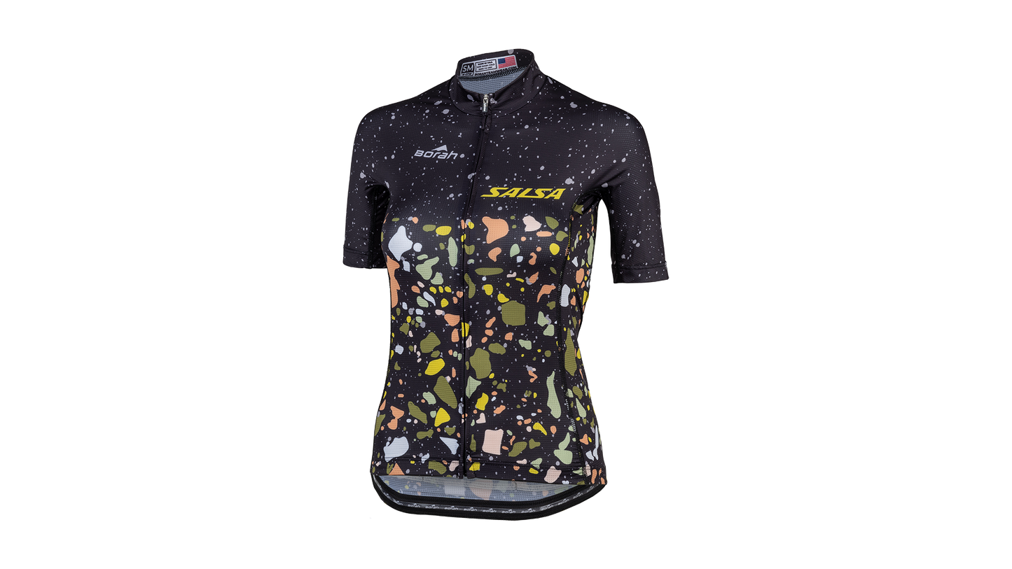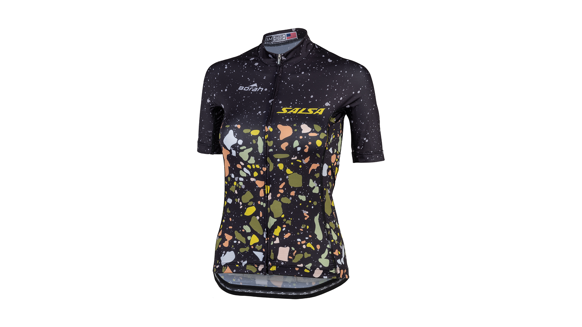 - Matches Salsa Terrazzo bibs, vest, gloves, and cap