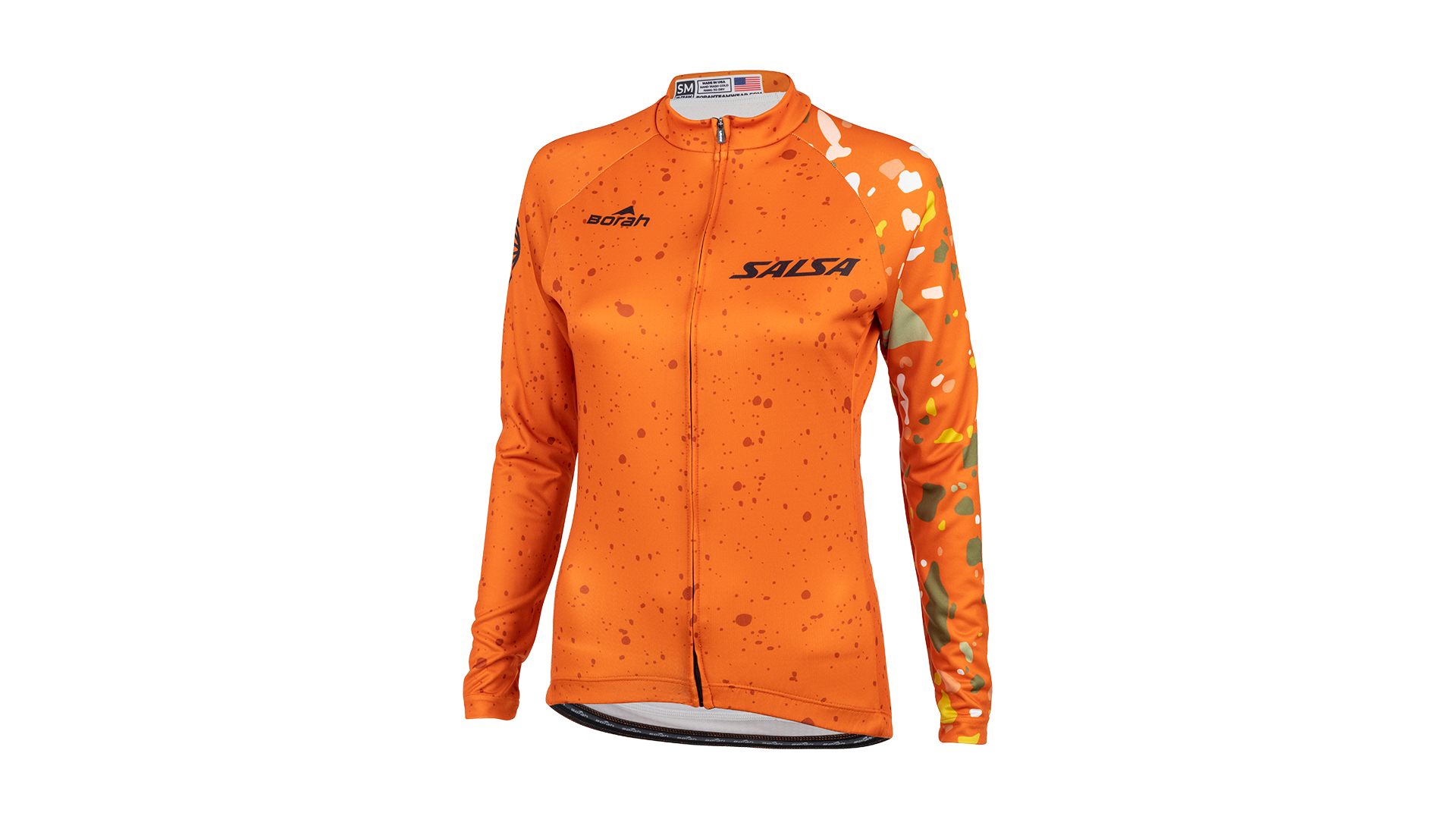 - Matches Salsa Terrazzo bibs, vest, gloves, and cap